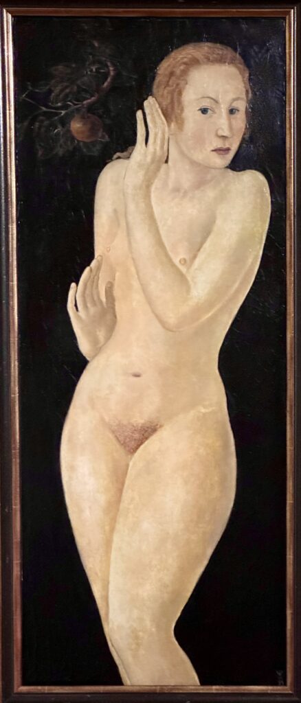 Else Wex-Cleemann ist in Hamburg aufgewachsen. An der dortigen Kunstgewerbeschule studierte sie Zeichnen und setzte ihre künstlerische Bildung in Berlin fort. Mit ihrem Selbstbildnis „Eva“ in der Ausstellung vertreten. Die Vertreterin der Neuen Sachlichkeit malte das Ölbild 1937, orientierte sich bei der Maltechnik aber an Meistern des 19. Jahrhunderts. Die Aktdarstellung erinnert an Venusdarstellungen der Renaissance. Die gemalte Eva, die Künstlerin selbst, wendet sich schützend vom die Verführung symbolisierenden Apfel ab. Ihr Gemälde „Alte Fabrik“ wurde im gleichen Jahr von den Nationalsozialisten als „entartete Kunst“ beschlagnahmt, während ihr ganzfiguriges Porträt von Hermann Behme als SS-Standartenführer in der Großen Deutschen Kunstausstellung gezeigt wurde. Sie starb 1978 in Bad Oldesloe.