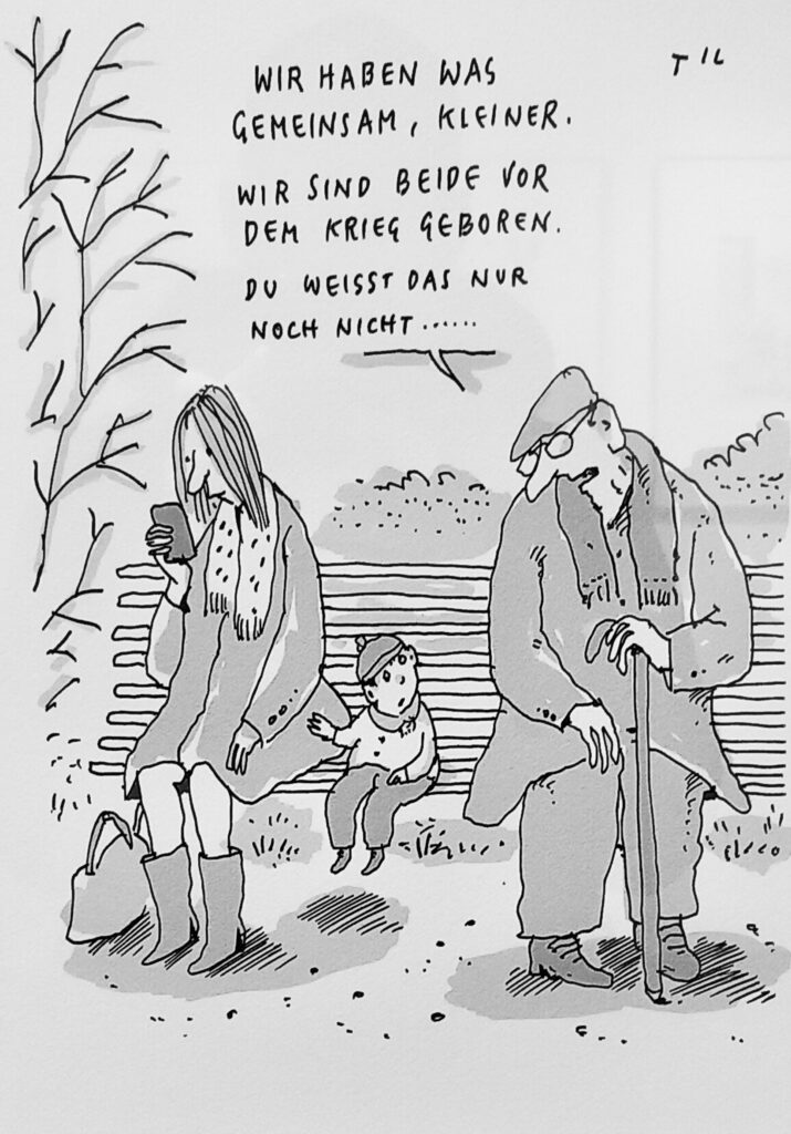 Weniger bekannt als seine Cartoons sind Til Mettes Gemälde, darunter die Acryl-Reihe „Bonzen“ von 2022 und ausgewählte Portraits, die die Schau ergänzen. Ein Großteil der gezeigten Cartoons ist in den letzten 10–15 Jahren entstanden (leider sind die meisten Werke nicht datiert gehängt). Ältere Werke hätten eine spannende Erweiterung der Ausstellung darstellen können.