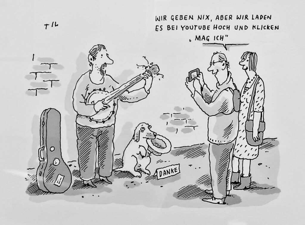 Til Mettes Cartoons sind damit aktueller denn je, denn sie bieten ein heilsames Korrektiv in zunehmend polarisiert geführten politischen Debatten. Aktuell auch, weil in Kontroversen das sachliche Argument zugunsten moralischer Selbstüberhöhung an Bedeutung verliert und identitätspolitische Lagerbildungen den selbstreflexiven und kritisch-ironischen Blick auf sich selbst und die eigenen „Peers“ vernebeln. Die Ausstellung im Schleswig-Holstein-Haus zeigt neben Drucken auch einige Originalzeichnungen Mettes und bietet ein breites thematisches Potpourri. Eine durchdachte Hängung strukturiert einzelne gesellschaftliche und politische Themenkreise.