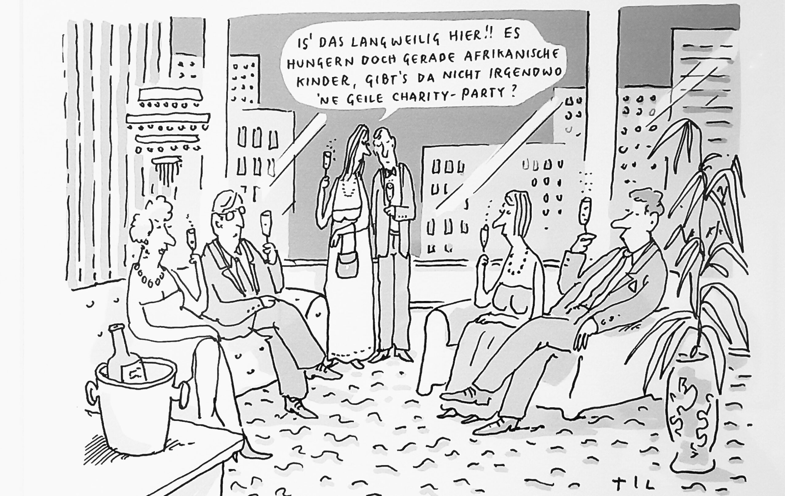 Charakteristisch für Til Mettes Cartoons ist dabei, dass er auf die Darstellung der „Mächtigen“ oder der politischen Entscheidungsträger*innen komplett verzichtet. Seine Szenen spielen ausnahmslos in einem als bildungsbürgerlich wahrgenommenen Milieu, zu dem Til Mette selbst zu zählen ist. Sein Humor ist damit niemals ein Treten nach dem anderen (ob „nach oben“ oder „nach unten“), sondern vielmehr eine selbstreflexive Auseinandersetzung mit den Widersprüchen und Brüchen der eigenen „peer group“.