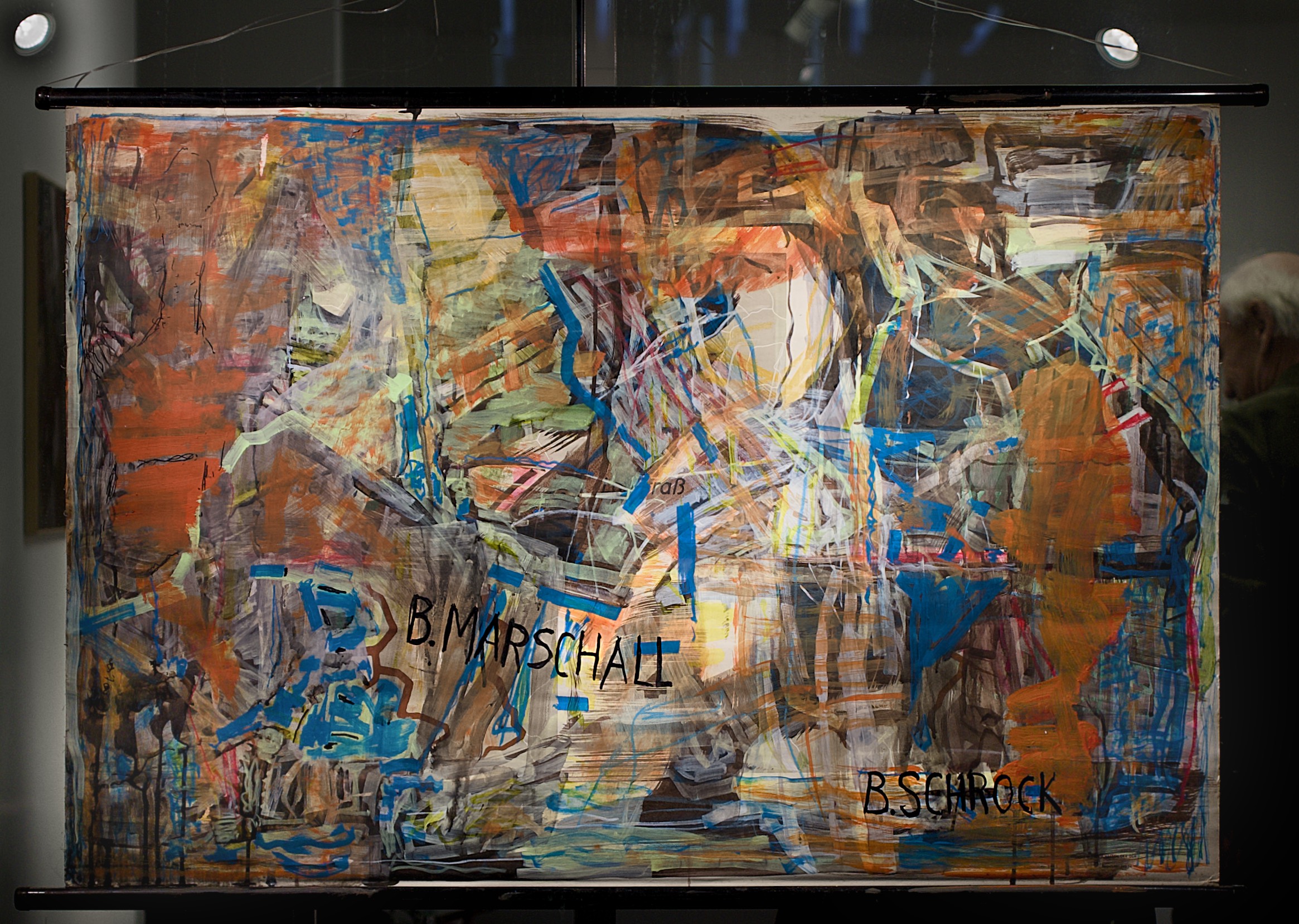 Zumeist mit Acrylfarben und Tusche arbeitet der gelernte Schlosser Schrock schon seit mehr als 40 Jahren. Seit 1980 ist der gebürtige Neubrandenburger freiberuflich als Maler und Grafiker tätig. Inspirieren lässt er sich durch Lyrik und Musik. Bernhard Schrock kreiert seine abstrakten Gemälde durch Übermalungen und Collagen.