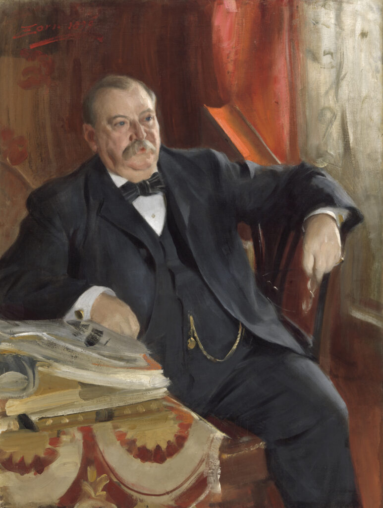 Warum wandte sich Anders Zorn trotz dieser Perfektion ab 1885 der Ölmalerei zu? Betrachtete er sie, wie vorherrschend am Ende des 19. Jahrhunderts, als wertvollere, schwierigere Disziplin? Oder einfach als besser verkäuflich? Letzteres ist anzunehmen. Ein Pinselstrich, in Wasserfarbe ausgeführt, lässt sich nicht mehr korrigieren. Einen Pinselstrich in Öl kann man bei Nichtgefallen vielfach übermalen. Ölglänzend wollten sich viele der Auftraggebenden sehen – vor allem: glänzend. Gekonnt setzte der Künstler die Ladies der amerikanischen Oberschicht in Szene, in tief ausgeschnittenen, seidig wallenden Abendkleidern. Die Herren dazu, Präsidenten, Industriemagnaten, sitzen im dunklen Anzug, Weste und weißen Hemd mit Stehkragen und Halsbinde vor ebenso dunkel getäfeltem Hintergrund in ausladenden, mit Schnitzereien verzierten Office-Chairs. In der Hand halten sie eine Zigarette, ein Buch oder stützen den Ellbogen lässig auf die Tischplatte.