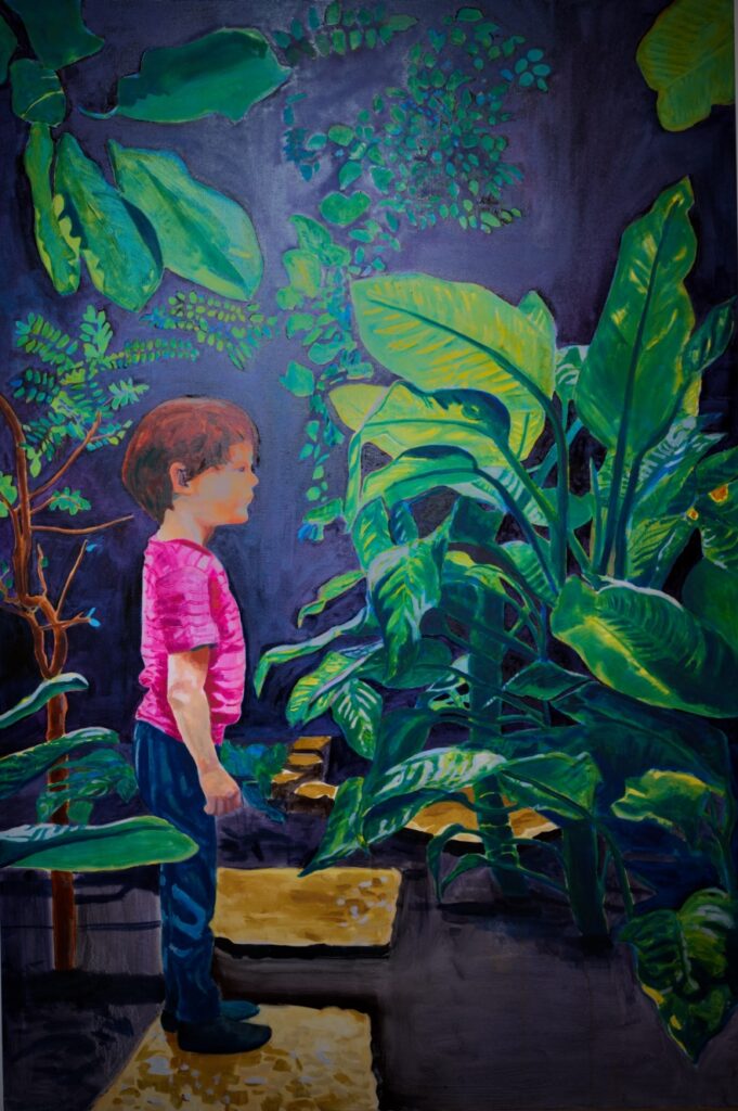 Immer wieder tauchen auf den Bildern Kinder auf, die staunend und tastend vor den Pflanzen stehen. Sie nehmen die Haltung neugieriger Beobachter ein, offen für das Unbekannte und das noch nicht Entdeckte. Das Motiv des Kindes erinnert an eine verloren gegangene Fähigkeit, die der Betrachter wieder erfahren darf: das Staunen. Für die dargestellten Kinder ist die Begegnung mit den Pflanzen alles andere als profan; jedes Detail wird mit größter Sorgfalt erkundet, als öffne sich ein neuer Kosmos. Nicht der Betrachter selbst steht im Mittelpunkt, sondern das Betrachten als aktiver, sinnstiftender Prozess.